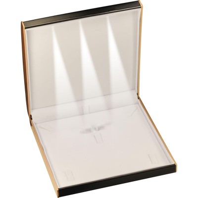 LED Black Extra Large Necklace Pendant Earrings Ring Bracelet Box Luxury PU Leather Dome Top Designed with Gold Color Painted on