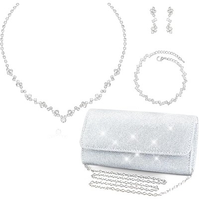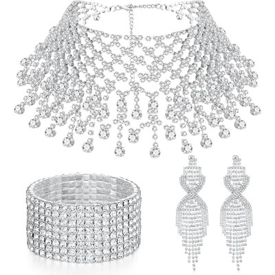 3 Pcs Women Crystal Jewelry Set Includes Bridal Wedding Rhinestone Choker Necklace Crystal Bracelets and Dangle Earrings