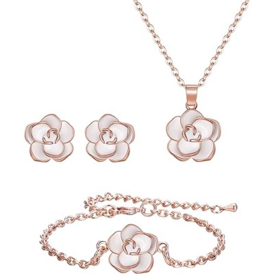Rose Flower Necklace Earrings Bracelet Set 14K Gold Plated Hypoallergenic Jewelry Sets Gift for Women