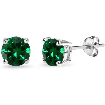 Sterling Silver Birthstone Earrings for Women, Genuine or Synthetic Gemstone 6mm Round Solitaire Stud Earring for Bridesmaids