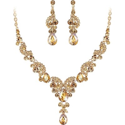 Rhinestone Crystal Bridal Floral Wave Teardrop Necklace Earrings Set