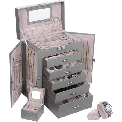 Jewelry Box Organizer 6 Tier Jewelry Box for Women Large Jewellery Display Storage Case with Lock Mirror Jewelry case for