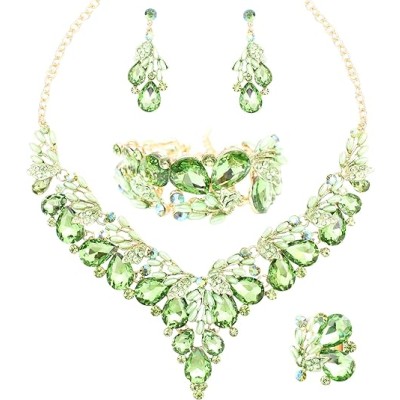 Jewelry Set for Women, Statement Necklace Dangle Earrings Bracelet Ring, White/KC Gold Plated Jewelry Set with Rhinestone Pearl