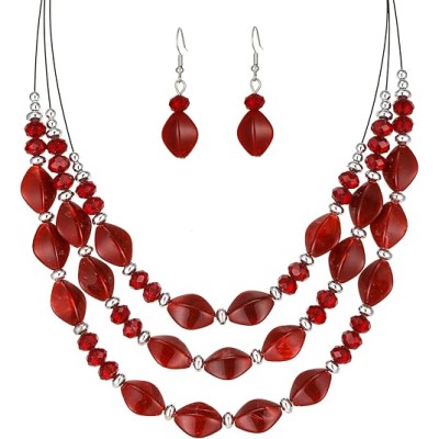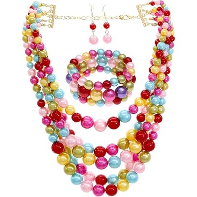 3 Layered Chunky Statement Necklace for Women Beaded Strand Necklaces with Earring Fashion Costumes Collar Necklace Jewelry Sets