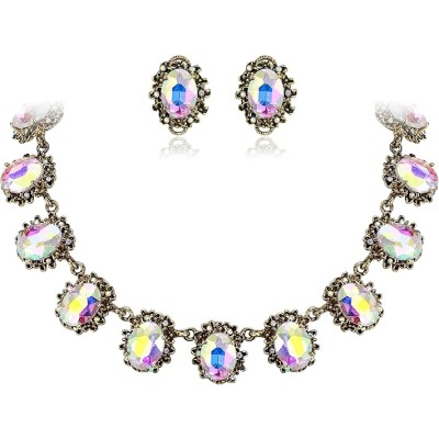 Victorian Style Statement Necklace Pierced Earrings Jewelry Set for Women Crystal Floral Cameo Inspired Oval Jewellery for Party