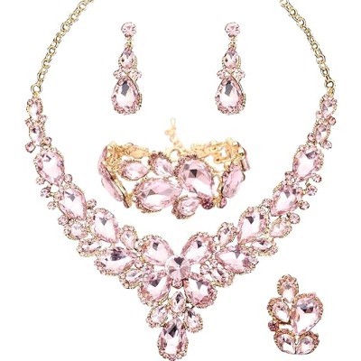 Elegant Necklace Earrings Bracelet Crystal Bridal Wedding Jewelry Sets for Brides Bridesmaid Prom Formal Costume Accessories for
