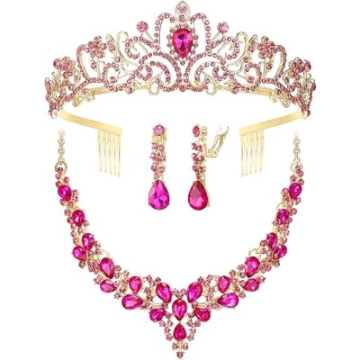 1Set Rhinestone Crown Jewelry with Necklace and Earrings Elegant Accessories for Weddings Parties and Special Occasions