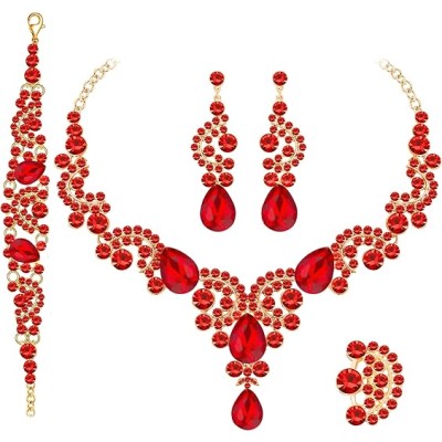 Crystal Bridal Wedding Jewelry Sets for Women Rhinestone Teardrop Crystal Statement Choker Necklace Drop Earrings Link Bracelets