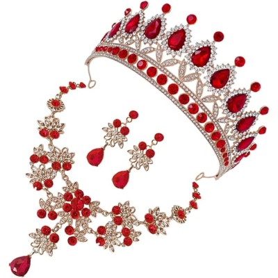 Crown Necklace Earrings Gold Wedding Bride Crystals Sparkly Gala Classy Necklace and Earring Crowns