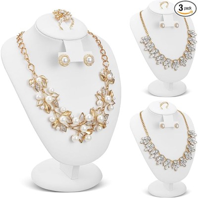 3 Pcs White Leather Jewelry Display Necklace Earrings Ring Display Stand Jewelry Bust/mannequin for Selling and Shows
