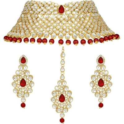 Faux Kundan Bridal Choker Necklace Earrings Maang Tikka Set Ethnic Traditional Bollywood Jewellery Gift for Women