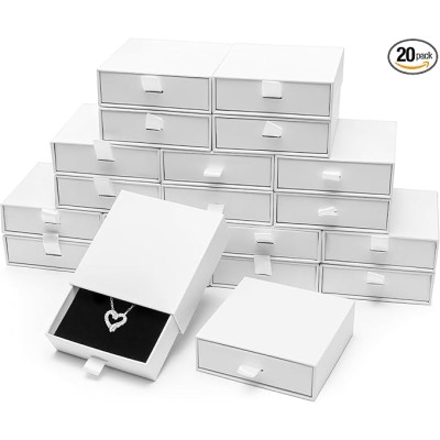 Jewelry Boxes, 20 Pack 3.5×3.5x1 Inch Small Jewelry Gift Box Bulk, Cardboard Jewelry Gift Necklace Ring Earring Boxes (White)