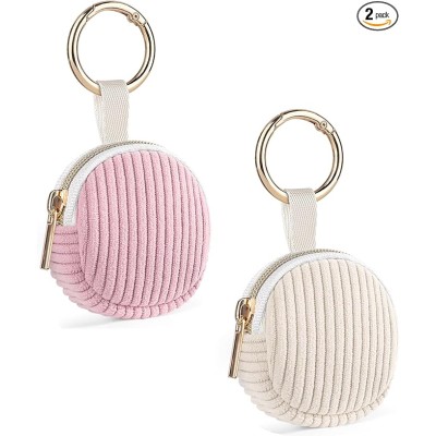 Ring Holder Keychain, 2 Pack Corduroy Jewelry Holder Storage with Ring Buckle, Portable Mini Travel Jewelry Keeper Case for