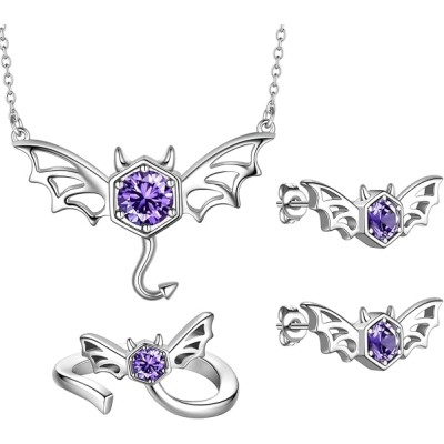 Halloween Enamel Paint Flying Bat Necklaces/Earrings/Rings Sliver/Black Gun Plated Cubic Zirconia Gothic Festival Classic