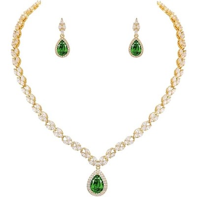 White Gold/Gold Plated Women Cubic Zirconia CZ Marquise Teardrop Bridal Tennis Necklace and Drop Earring Set for Wedding Brides