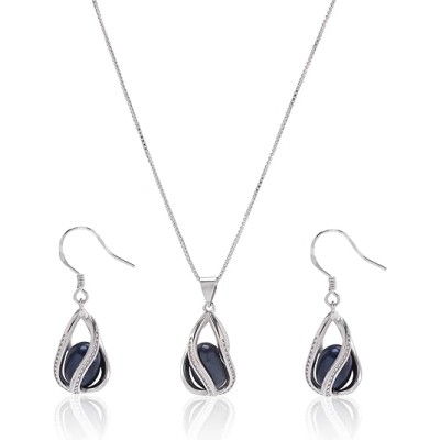 Pearl Jewelry Set For Women S925 Sterling Silver/14K Gold Plated Necklace & Earrings Set Freshwater Pearl Pendant Cage Set for