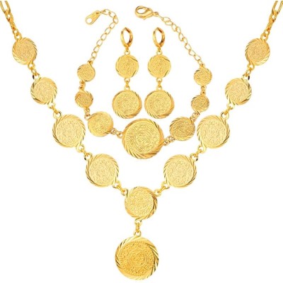 Statement Chunky Jewelry Set Choker Earrings Bracelet Ring Gold Silver Plated Round Pendant Necklace Nigerian Costume Party