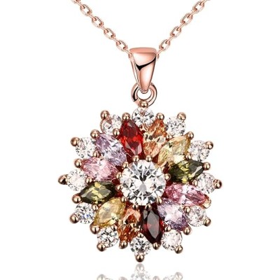 Colorful Snowflake Pendant Necklace Earrings Rose Gold 5A Cubic Zirconia | Crystal Sweater Chain | Multi Gemstone Garnet