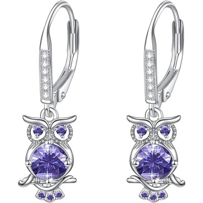 S925 Sterling Silver Owl Stud Earrings for Women - July Birthstone Jewelry Gifts for Daughter Granddaughter