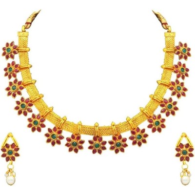 Bollywood Flower Shape Faux Stone Wedding Necklace Earrings Indian Fashion Jewelry Set Gift for Women