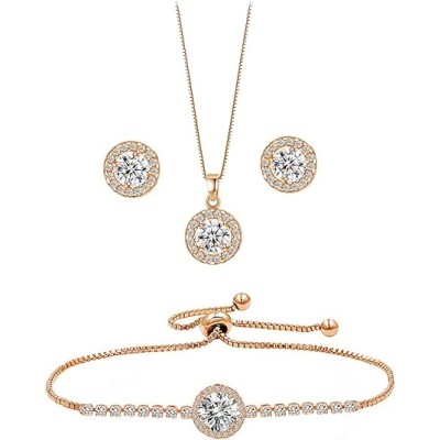 Round Earrings Necklace Bracelet Jewelry Set For Women Bridal Bridesmaid Wedding Party Prom Daily